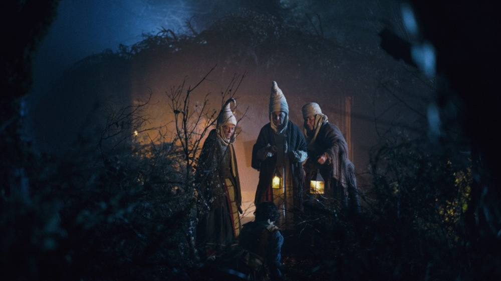 Estructurándola también con una diferente técnica narrativa. Usando como vehículo una serie de cuentos cortos alrededor del fuego (siendo las anteriores una única historia). Uno de introducción, dos de nudo y uno de desenlace. Favoreciendo que sea una historia corta (apenas 90 minutos), cosa que siempre se agradece.